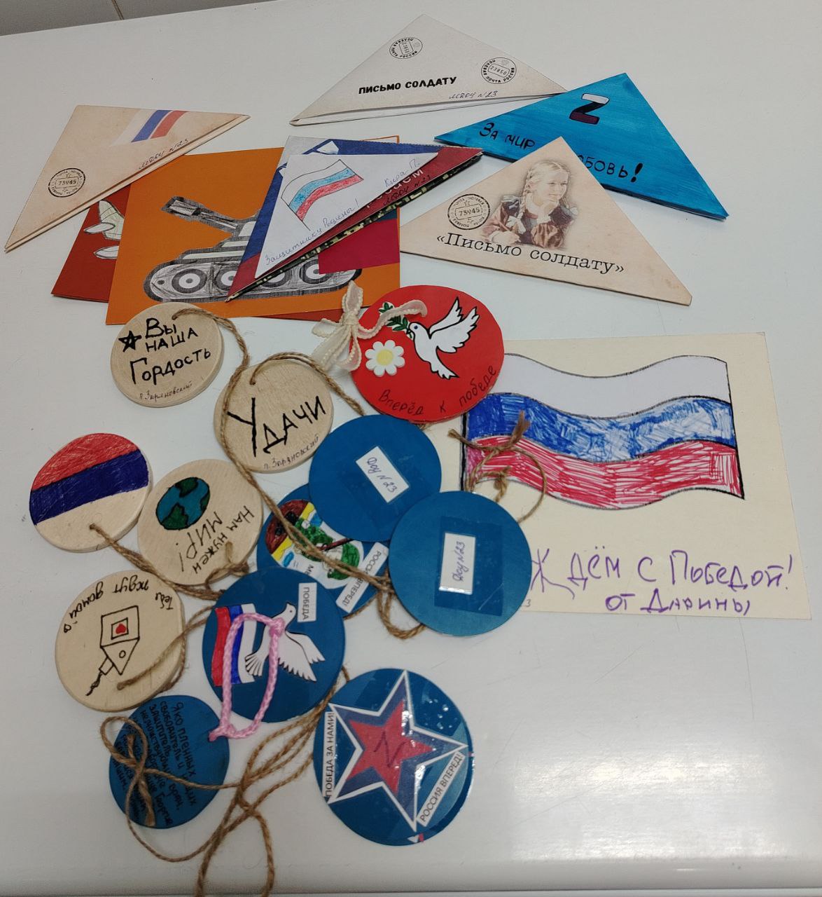 В нашем детском саду прошла акция «Письмо солдату», в ходе которой воспитанники вместе с родителями и воспитателями писали письма и рисовали рисунки для солдат –участников СВО-защитников нашей Родины. Ребята понимают, что поддержка для человека, находящегося вдали от дома, просто необходима, что рисунки и подарки обладают огромной силой. Российские военные в зоне СВО уже получили наши письма и подарки. Мы хотим сказать, что благодарны солдатам, что восхищаемся их мужеством и ждём возвращения домой!