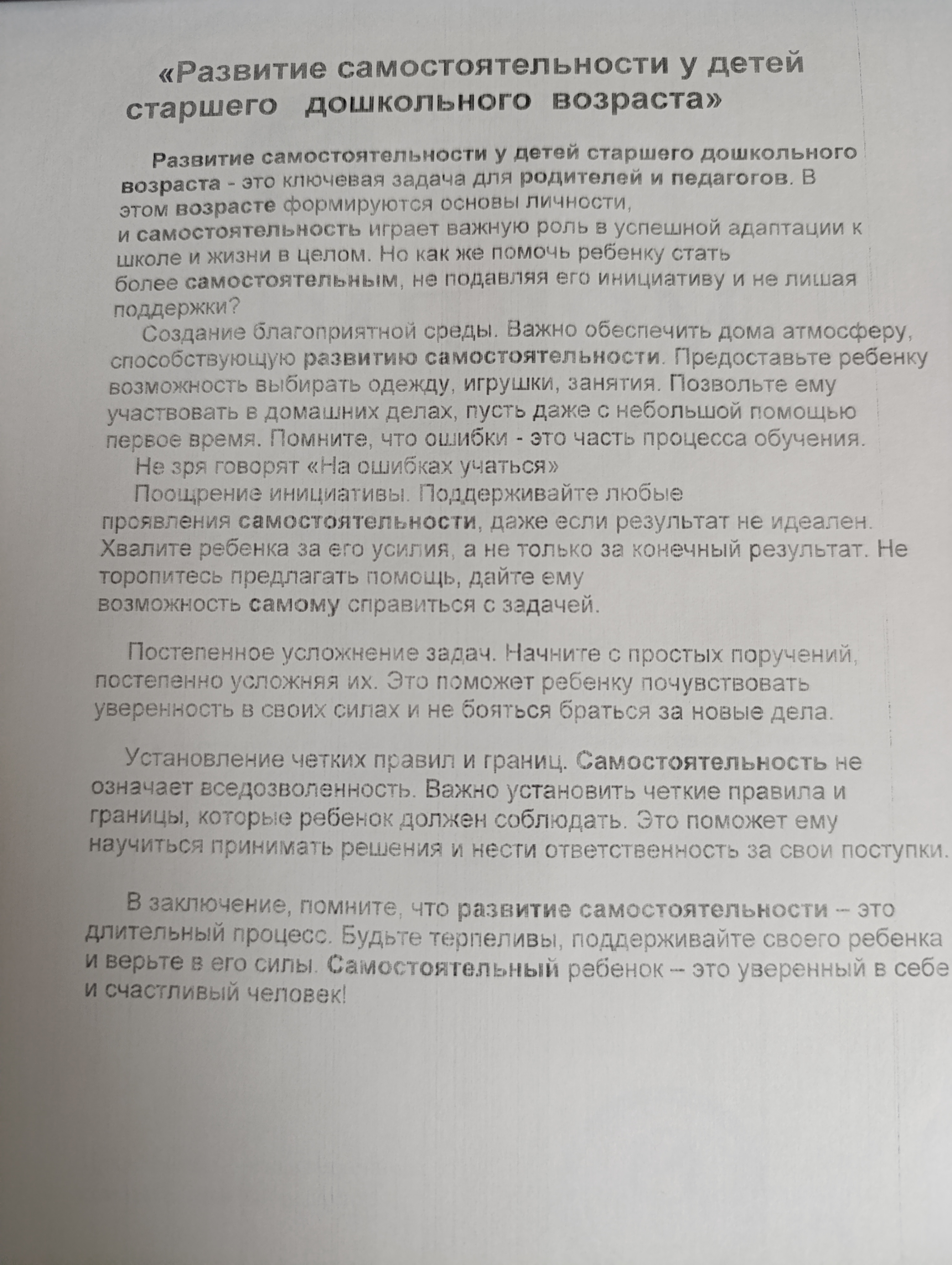 Развитие самостоятельности у детей старшего дошкольного возраста